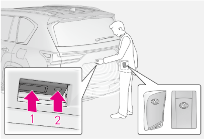 ハンズフリークローズ&ロック(ウォークアウェイ)機能が待機状態でバックドアからすばやく離れたとき