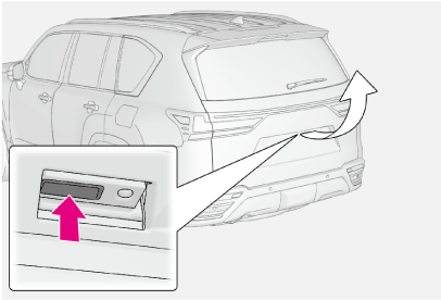 バックドア施錠時:電子キーを携帯して、バックドアオープンスイッチを押し続ける