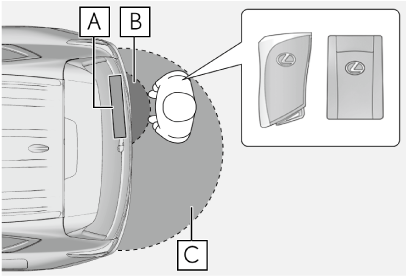 電子キーが作動範囲内にあるとき(→作動範囲(電子キーの検知エリア))