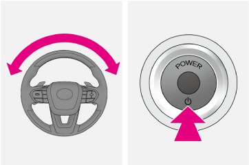 パワースイッチをOFFにしたあとにドアを開閉すると、ステアリングロック機能によりハンドルが固定されます。パワースイッチを操作すると、ステアリングロックは自動で解除されます。