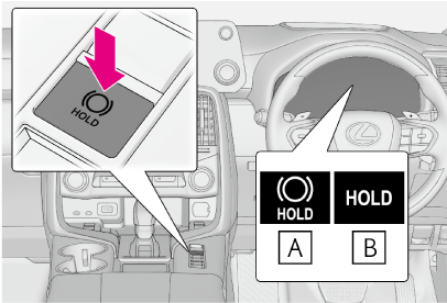ブレーキホールドシステムの作動条件を満たしているときに、ブレーキホールドスイッチを押してもブレーキホールドスタンバイ表示灯(緑)が点灯しないときはシステムの異常が考えられます。ただちにレクサス販売店で点検を受けてください。