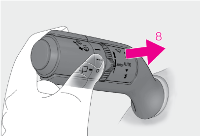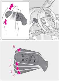 ウォッシャー液を出すレバーを手前に引くとワイパーと連動してウォッシャーが作動します。(数回作動したあと、液だれ防止としてさらに1回作動します)ヘッドランプが点灯しているときに5 回連続で手前に引くとヘッドランプクリーナーが作動します。