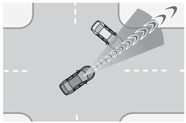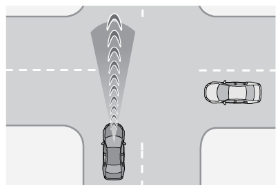 交差点など、側方から接近する車両や自動二輪車との衝突の可能性が高いとシステムが判断したとき、衝突警報およびプリクラッシュブレーキによる支援を行います。