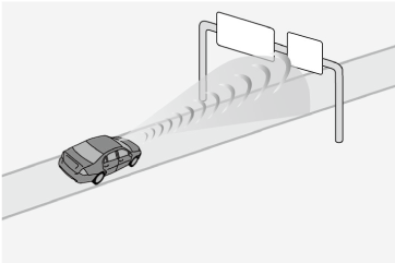 道路上方に物体(道路標識や看板など)がある場所を走行するとき