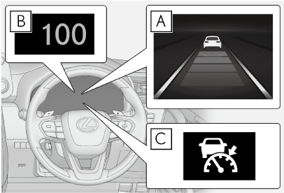 本機能によって、車間制御モードの速度や車間距離設定が変更されることはありません。
