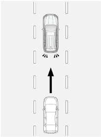 後方車両への接近警報は、同じ車線を走行する後方車両が追突の可能性が高い状況のとき、検知範囲に入った車両を検知します。
