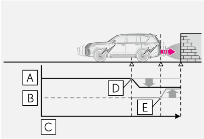 PKSB(パーキングサポートブレーキ)は、完全に車両を停止させるシステムではありません。また、車両を停止させることができたとしても、ブレーキ制御は約2秒で解除されるため、すぐにブレーキペダルを踏んでください。