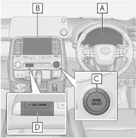 クロールコントロールを長時間連続的に使用すると、オートマチックトランスミッションが異常過熱することがあります。このときは、ブザーが鳴り、クロールコントロールが自動的に解除されます。また、マルチインフォメーションディスプレイに異常を知らせるメッセージが表示されることがあります。この場合は、表示が消えるまで、安全な場所に停車してください。