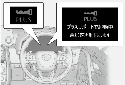 プラスサポートは、お客様の運転を補助し、より安全なドライブを支援します。プラスサポートを使用するためには、プラスサポート用スマートキー(以下、サポキー)が必要です。プラスサポートおよびサポキーは販売店装着オプションです。