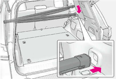 ストラップを引いてデッキボードを持ち上げる