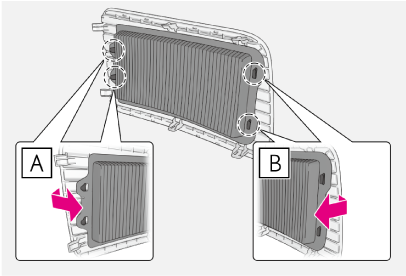 誤った取り扱いをすると、吸入口カバーまたはフィルターが損傷するおそれがあります。ご自身での清掃に不安がある場合は、レクサス販売店にご相談ください。