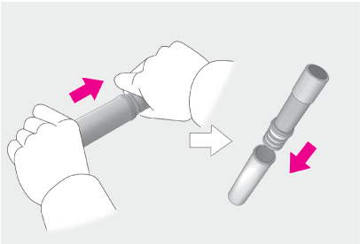 - 本体をまわしながら抜き、本体を逆さにして挿し込む
