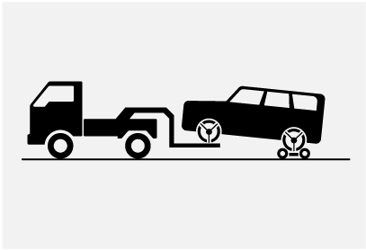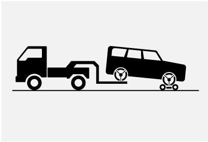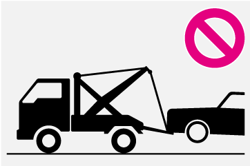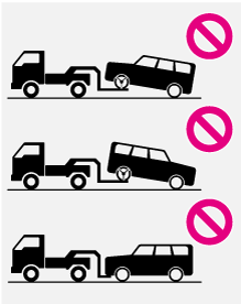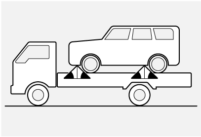 車両の損傷を防ぐために図のようなレッカー車ではけん引しないでください。