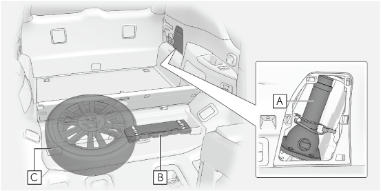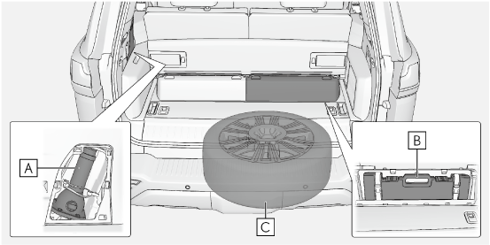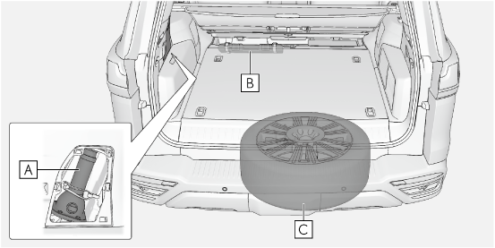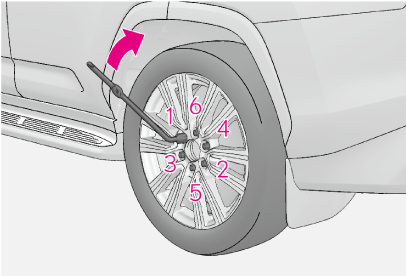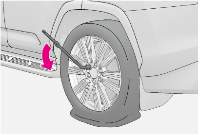 パンクしたタイヤを、備え付けのスペアタイヤと交換してください。