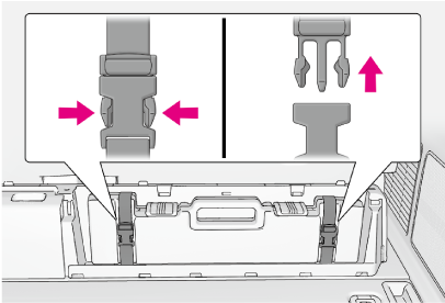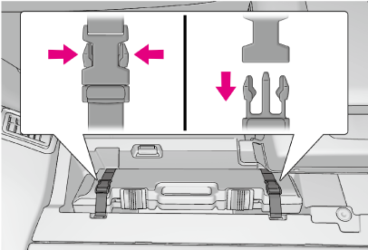 タイヤを格納したあとは、確実に固定されていることを確認してください。固定されていないとタイヤががたつき、走行中にはずれるおそれがあります。