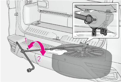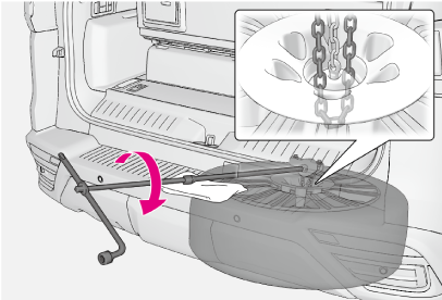 正しい手順をお守りいただかないと、スペアタイヤキャリアの損傷やタイヤの落下により、重大な傷害におよぶか、最悪の場合死亡につながるおそれがあります。