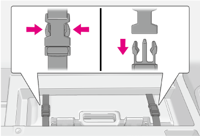 走行前に正しい位置に格納されているか確認してください。正しく格納されていないと、事故や急ブレーキの際、重大な傷害につながるおそれがあり危険です。