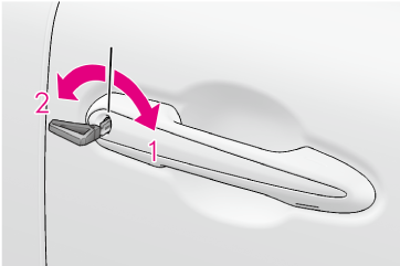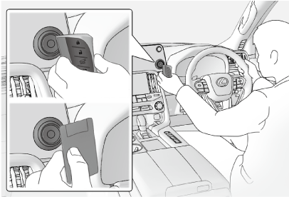 電子キーと車両間の通信がさまたげられたり(→機能が正常に働かないおそれのある状況)、電子キーの電池が切れたときは、スマートエントリー&スタートシステムとワイヤレスリモコンが使用できなくなります。このような場合、次の手順でドアを開けたり、ハイブリッドシステムを始動したりすることができます。