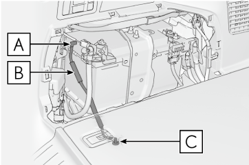 ボデーに接続された補機バッテリーのマイナス端子をはずさないでください。誤ってはずすとプラス端子と接触し、重大な傷害におよぶか、最悪の場合死亡につながるおそれがあります。