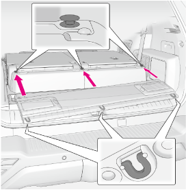 7人乗り車:バッテリーカバーを取りはずす前にデッキボードを取りはずしてください。(→補機バッテリーカバーを取りはずす/取り付けるときは(7人乗り車))
