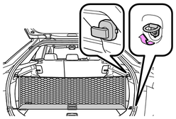 後ろ側のデッキフックとネットフックを使って積荷ネットをかけることができます。