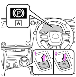 自動または手動でパーキングブレーキをかける・解除することができます。