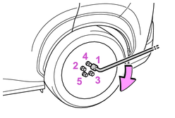 ホイールボルトレンチを使用し、図の番号順でホイールボルトを2、3度しっかり締め付けます。