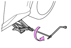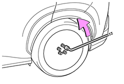 ホイールボルトレンチを使用し、すべてのホイールボルトを少し(約1回転)ゆるめます。