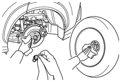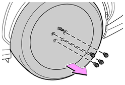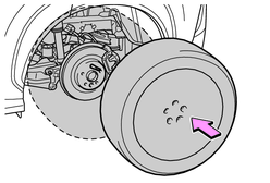 残りのホイールボルトをすべて取りはずし、タイヤを取りはずします。