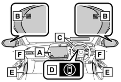 開いたドア(バックドアを除く)と衝突する可能性がある車両・自転車を検知したときは、検知した側のドアミラーインジケーター(表示灯一覧)が点灯します。検知している側のドアを開いた場合やドア開放をキャンセルした場合は、ドアミラーインジケーターが点滅します。