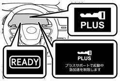 “プラスサポートで起動中 急加速を制限します” というメッセージが表示され、プラスサポート表示灯が点灯したことを確認する