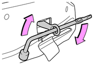 ラゲージルーム内のけん引フックを取り出します(工具/ジャッキの搭載位置)