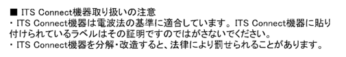 ITS Connect機器は電波法の基準に適合しています。ITS Connect機器に貼り付けられているラベルはその証明ですのではがさないでください。