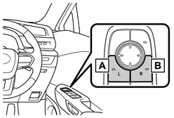 ミラー選択スイッチのLまたはRどちらかが選択されているときは、後退時に鏡面が下向きになり、下方が見やすくなります。