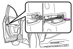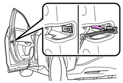 補機バッテリー端子をはずすとドア開スイッチでドアが開かなくなり、電子キーを車内に閉じ込める可能性があります。