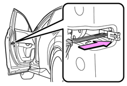 • スマートエントリー&スタートシステムやワイヤレスリモコンでドアをロック/ロック解除することや、ドア開スイッチでの操作ができません。メカニカルキーを使って手動リリースハンドルの作動を有効/無効にしてください。手動リリースハンドルの作動を有効にすることでドアを開くことができます。