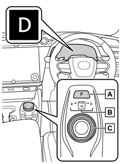 シフトポジションがPに切りかわったあと、車両を発進させるときは、ダイヤル式シフトを操作してください。