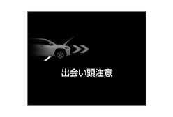 DSSS用路側装置が設置されていない交差点で、地図データを用いることにより、右側方向指示灯を点滅させて右折待ちをしているときに、通信機を搭載した対向車がいるにもかかわらず発進しようとしているなど、対向車を見落している可能性があるとシステムが判断したときに、ブザーと表示で注意喚起を行います。