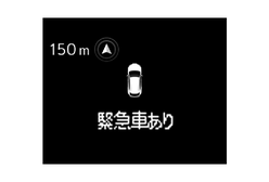 緊急車両(救急車)がサイレンを鳴らして近辺を走行しているときに、ブザーと音声案内により、自車に対する緊急車両のおおよその方向/距離/進行方向を表示します。