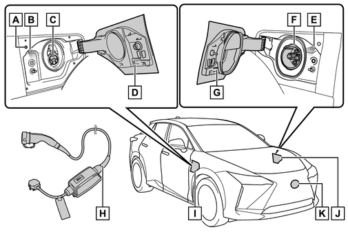 ドアのセキュリティ機能で施錠された場合、充電リッドが閉まっていれば、連動してロックされます。(ロック解除操作のセキュリティ機能)