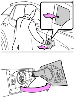 充電リッドの車両後端(図に示す位置)を押し、充電リッドを開ける。