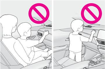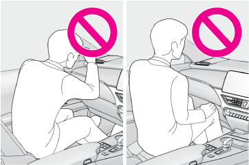 お子さまを助手席SRSエアバッグの前に立たせたり、ひざの上に抱いたりしない