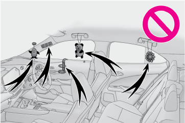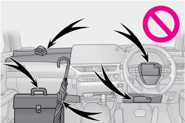 ダッシュボード・ハンドルのパッド部分・インストルメントパネル下部などには何も取り付けたり、置いたりしない
