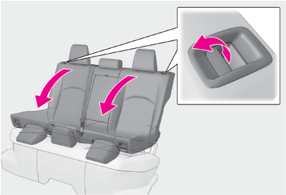 - リヤシートのアームレストを引き出している場合は、格納する(→リヤアームレストを使うには)助手席側のシートのみを操作する場合、この手順は不要です。