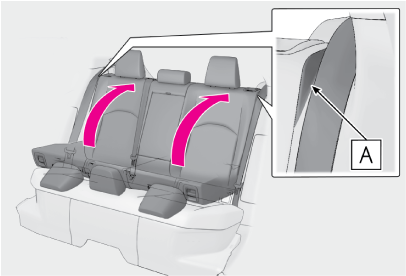 - 背もたれを前倒しするときや、前倒ししたあとは
