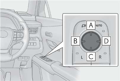 もう一度押すと、選択が解除されます。 - ミラーの鏡面を調整するにはスイッチを押す