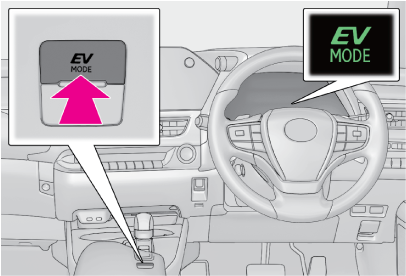 ハイブリッドシステム始動操作後、READYインジケーターが点灯したら、ガソリンエンジンが始動する前にEVドライブモードスイッチを押してください。