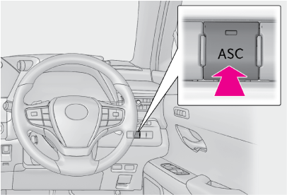 走行モード(→ドライブモードセレクトスイッチ)がエコドライブモード/カスタムモード(パワートレーン制御がECO)、またはEVドライブモード(→EV ドライブモード)がONのときは、インジケーターが点灯していてもASC は作動しません。