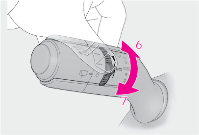 が選択されているときは、次のようにツマミをまわして、雨滴センサーの感度を調整できます。