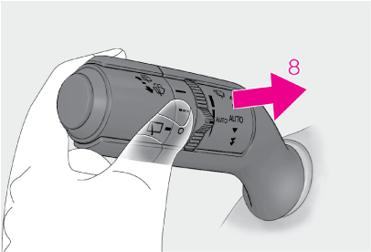 ヘッドランプが点灯しているときに5回連続で手前に引くとヘッドランプクリーナーが作動します。